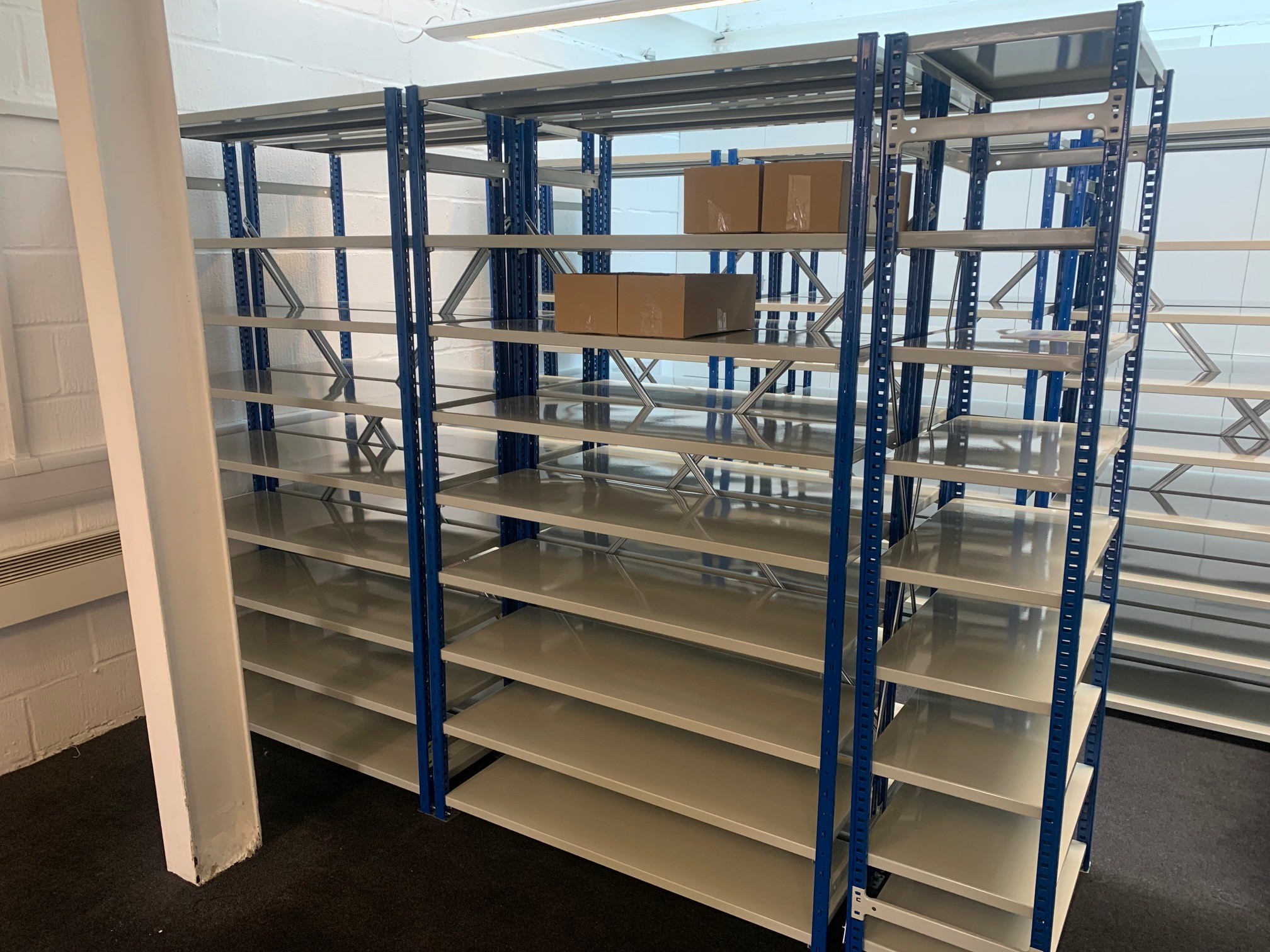 Racking365 (UK) Ltd worked with the client on a couple of options, who then decided overall of 2o bays of EXPO 4 shelving , complete with 9no shelves per bay. The customer opted for all starter bays for flexibility in moving the them in a different configuration at a later date – SEMA load notices were then dispatched and are now on display.