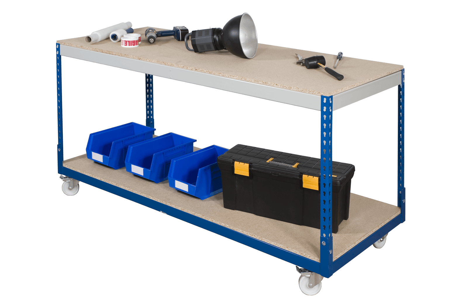 The bench includes 18mm chipboard decking and the base come with heavy duty nylon swivel castors (two braked and two un-braked)